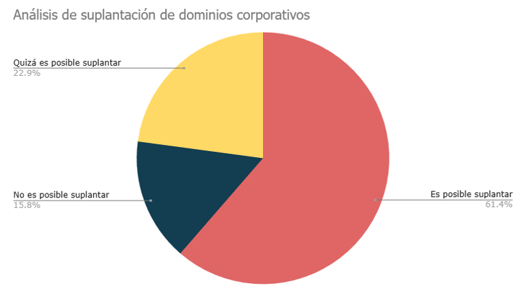El dato clave es que si sumamos el riesgo alto y medio, el 77% de las empresas analizadas son vulnerables a que su marca sea utilizada para estafar a clientes, proveedores o a sus propios empleados.